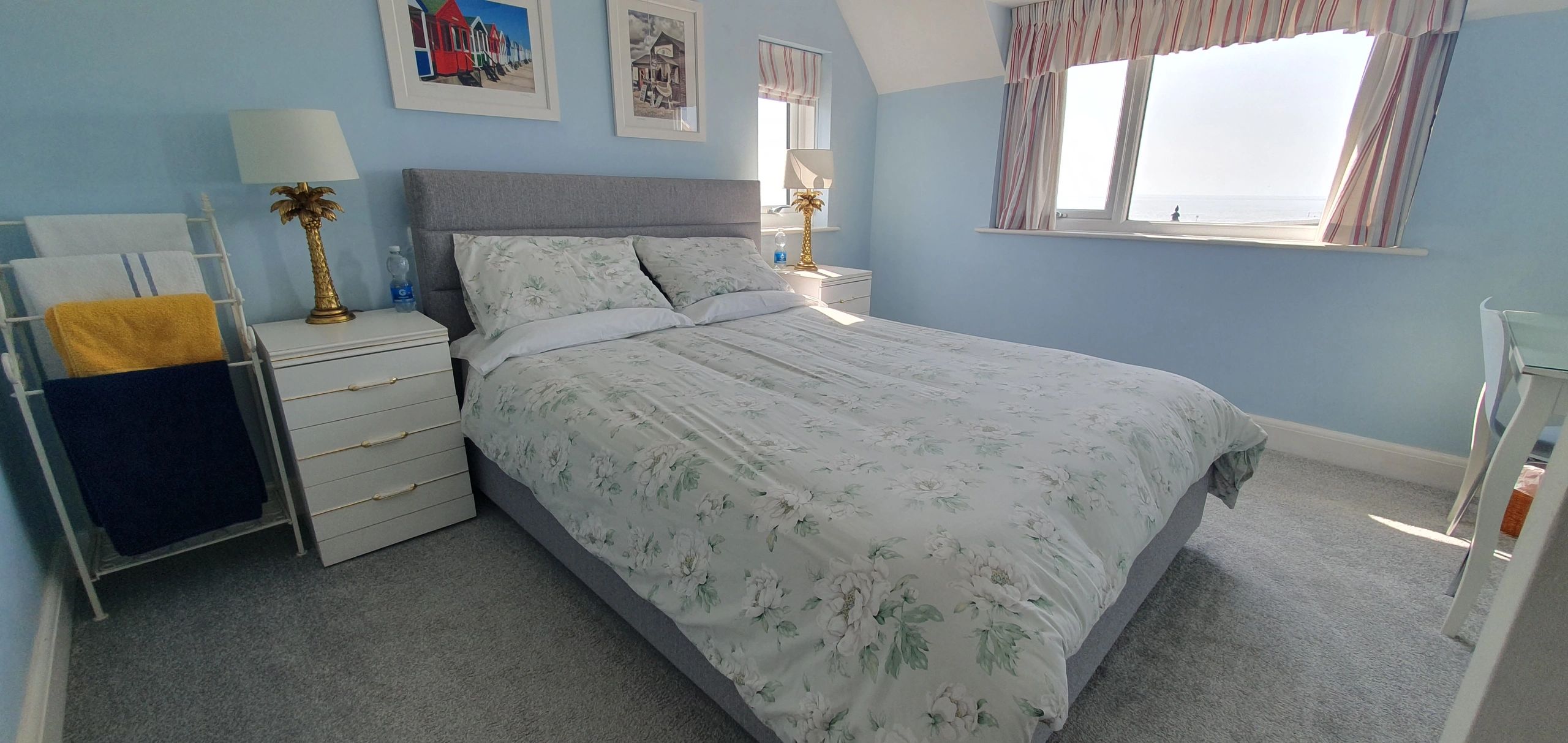 Bedroom 5 (double bed) has fabulous views over the sea and Southwold.