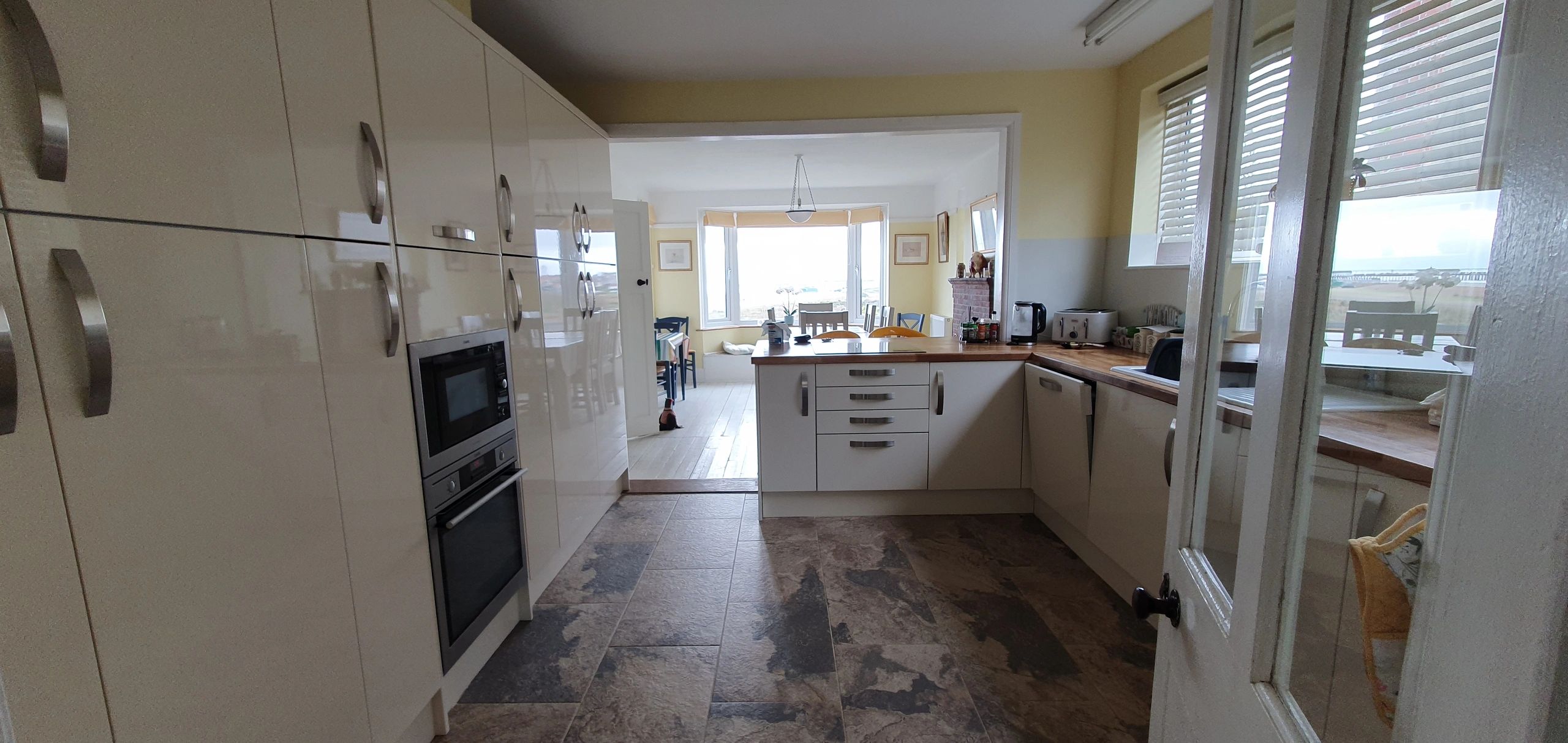 Spacious kitchen-diner with a large bay window overlooking Southwold and the sea